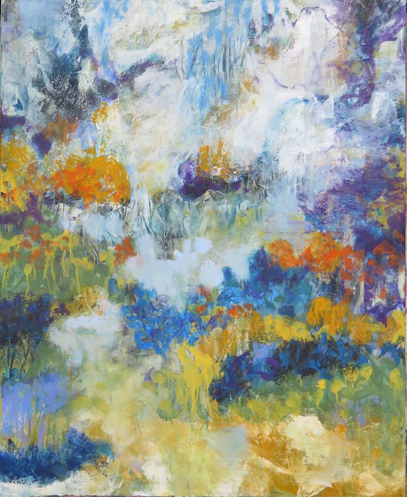 Peintures 2018 reflets en rivière bourrasque l’orée aurore chaleur torrent allégresse ravin I et II l’aube rouge la source fleurs et papillons la baie concrétions retour haut de page